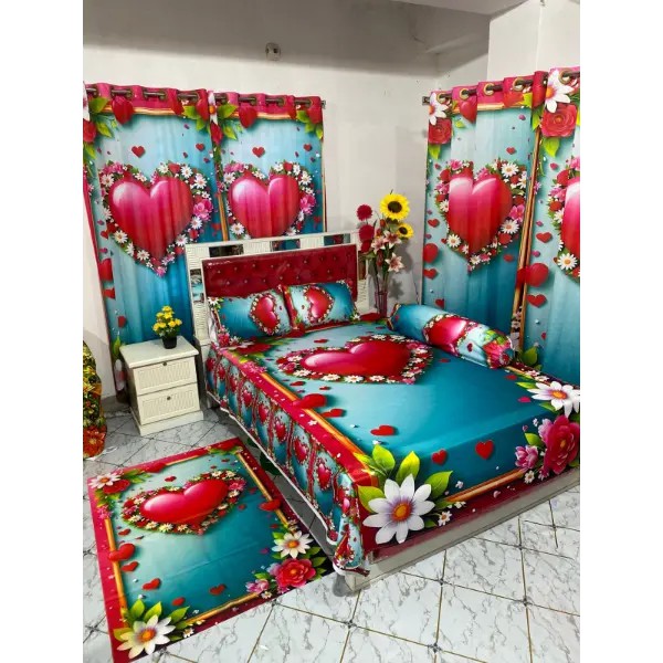 কম্বো সেটের সাথে পাবেন- ৪ পিসের বেডশীট সেট(একটি বেডশীট, দুটি মাথার বালিশের কভার, একটি কোলবালিশের কভার),
